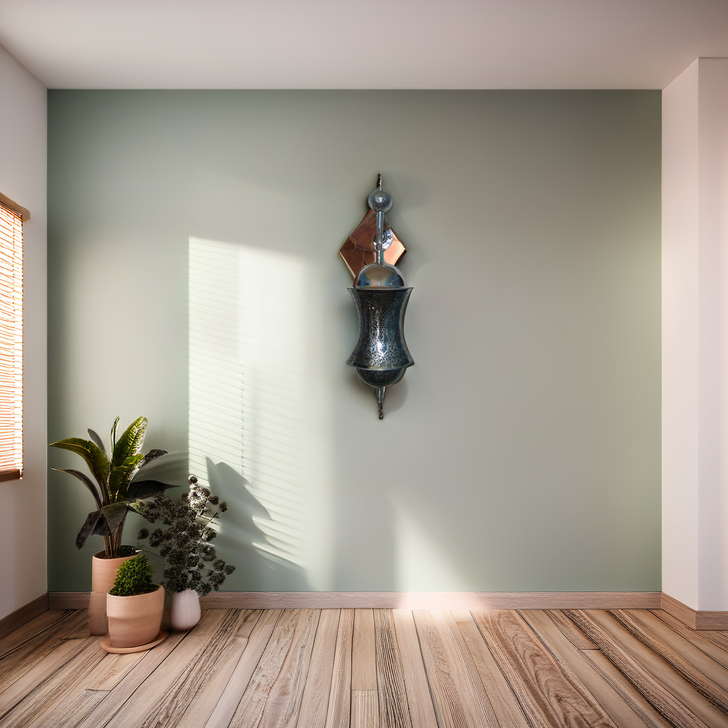 Add a touch of elegance and cultural charm to your space with this handcrafted metal wall lamp. Featuring intricate patterns and a unique design, this lamp is made from high-quality metal with detailed craftsmanship. The sleek and modern shape combines traditional artistry with a contemporary aesthetic, making it a perfect addition to any room. It casts a beautiful and soft glow, creating an inviting and warm atmosphere.